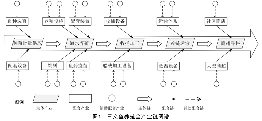 综上,现有研究成果对深远海养殖的理论和实践、全产业链的和延伸都展开了深层次思考和探索,为产业链条式发展和海洋牧场化发展奠定了一定基础,但在以下两个方面仍存在进一步探究的空间。一是基于全产业链的视角关注深远海养殖的成果并不多,而两者的交叉研究将对加快我国现代海洋渔业高质量发展和保障我国食物营养安全具有重要作用,并被赋予了理论研究与政策指导的双重科学价值。二是以具体养殖品种为案例,开展全产业链培育的相关研究不多,对其全产业链培育的现实逻辑和关键问题等的分析并不完全清晰明了,这也阻碍了我国海水养殖产业的发展壮大和提质增效,无法形成强大的示范和引领效应。因此,本文以三文鱼养殖为例,立足于全产业链培育的关键问题,以期疏通养殖全产业链各环节堵点,锻造富有韧性、安全自主可控的全产业链条,形成可复制可推广的产业模式,从而为海洋渔业高质量发展提供理论支撑和实践指导。