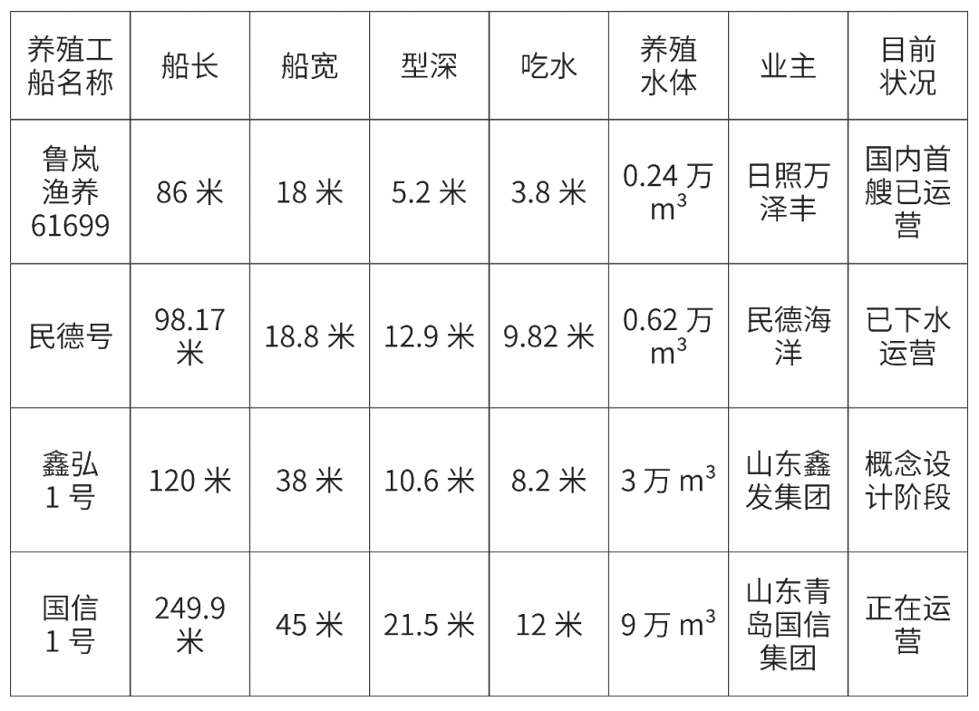 目前绝大多数大型智能网箱日常运营离不开交通运输船、养殖工船等外部支持,且需要有配套陆基进行支持,如何最大限度提高大型智能网箱依靠自身系统和装备实现相当时长的自持化管理能力,应是当下和未来要解决的主要技术问题之一;在网箱配套设备设施方面还有较大的提升空间,存在网衣易受损、饵料投喂困难、无有效规避病害措施等技术难题需要进一步解决;大型网箱养殖规模大且集中,需集合科研院所、育苗育种、饲料、海洋装备、市场营销等多方资源进行配套才能有效保障产业链运转。大型智能网箱造价较高,一次性投入资金体量大,传统养殖企业较难承受,目前随着技术不断地发展和网箱的规模化生产,大型智能网箱的造价有望得到降低。此外,随着大型企业集团的介入以及融资渠道的多元化,大型智能网箱有望迎来更快的发展。我国科学家在上世纪70年代末提出了建造海洋工船的设想,在2012年中国南方智库论坛上麦康森院士指出养殖工船“养殖集海上养殖、渔船补给、渔获物处理、船上加工为一体,是面向深海的游弋式渔业平台”,麦院士认为从养殖角度比远洋捕捞产量高、油耗低、单位人力鱼产量高、外交成本低,其有助于领海主权实质性占有。国外,法国和挪威合建了一艘长270米、总排水量10万m³的养鱼工船,年产鲑鱼3千吨;欧洲渔业委员会已建造一艘半潜式海洋渔业资源增殖船,船长189m、宽56m,整船犹如育苗场,从亲鱼暂养、繁殖到幼鱼饲养、放流都在工船上进行;西班牙养鱼工船兼孵化养殖双重功能,船体结构为双甲板,已获专利;2017年挪威船王进行散货船改装养鱼工船研发,利用10年左右船龄散货船改装,其已完成2艘8万吨级养殖工船建造,目前已投入三文鱼养殖运营;日本长崎县养鱼工船“蓝海号”,排水量4.7万吨、长110米、宽32米,在30-40米水深处运营。2017年我国第一艘养殖工船“鲁岚渔养61699号”,由中国海洋大学和中国水产科学院渔业机械仪器研究所设计,用于黄海冷水团养殖鱼苗培育和养殖场看护;2020年10月海南民德海洋的“民德号”养殖工船交船,总养殖水体量约6200立方米;2020年11月,山东青岛国信的“国信101号”养殖工船中试船下水,总吨位约3000吨、排水量约6800吨。2022年5月“国信1号”建成运营,该船是全球首艘10万吨级智慧渔业大型养殖工船,船长249.9米,排水量达13万吨,全船共有15个养殖舱,近9万m³,年产高品质大黄鱼3700吨。目前国内青岛国信集团正在建造“国信1号”迭代升级的姊妹船2-1号、2-2号,预计于2024年底前交付使用,30万吨超大型“国信3号”已启动功能论证和总体设计。九洲控股集团计划首期投资8.3亿元,建造1艘8万方水体自然交换养殖工船和1艘12万方开式可控循环式养殖工船。大百汇实业集团有限公司也委托中国船舶下属中船黄埔文冲船舶有限公司建造4艘深远海大型智能养殖工船。养殖工船目前是国内日常运营的活鱼运输船的智能加大升级版,可有效解决长期困扰传统开放式养殖“听天由命”痛点,既可有效避免鱼病害、台风等灾害,又能解决网衣损坏、饵料补给困难等问题。其更适合在深远海区域使用,特别是适合洄游性鱼类养殖。在上述优点之外,养殖工船的改造和新建在全球范围内仍属创新设计,且需要将海洋装备技术与鱼生物特性相结合,在技术改造上稍有考虑不周将导致一系列的问题;另外其也面临国内海事手续办理难度大、水体交换较小且能耗高等问题需要解决。