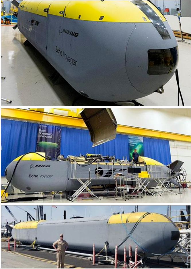 Stevens)说:“该项目的生产线已经从新冠肺炎疫情大流行带来的后勤挑战中恢复过来,波音公司对该项目的未来持乐观态度。” 超大型无人潜航器项目的设计借鉴了波音公司“回声航行者”无人潜航器的设计(但在某些方面有所不同,见下列3张图片)。30“回声航行者”的大小和地铁车厢差不多,长15.5米,矩形截面长、宽均为2.59米,空载重量为50吨,航程达1.2万千米。它可以容纳长达10米的模块化有效载荷,且其长度可增加到25.9米。10米的模块化有效载荷部分提供了大约56.6立方米的内部有效载荷体积;较短的一段(4.2米)可提供约25.49立方米的容积。“回声航行者”也能搭载外部有效载荷。 海军称超大型无人潜航器“是基于波音公司的‘回声航行者’,但包含了重大的变化,以支持军事任务的要求。这导致了在设定制造流程、建立工业基础和调整材料采购以生产第一艘原型潜航器方面的挑战。‘虎鲸’代表了自主式海上无人舰艇技术的前沿,将搭载可重构的模块化有效载荷舱,以支持多种有效载荷和不同的任务”。